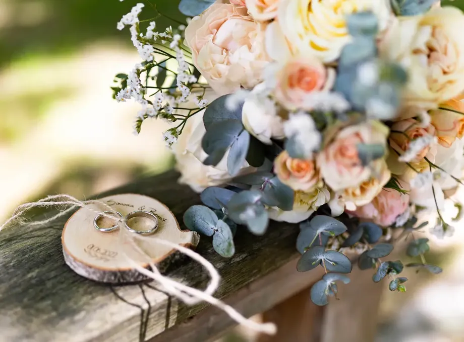 Die Eheringe und der Brautstrauß