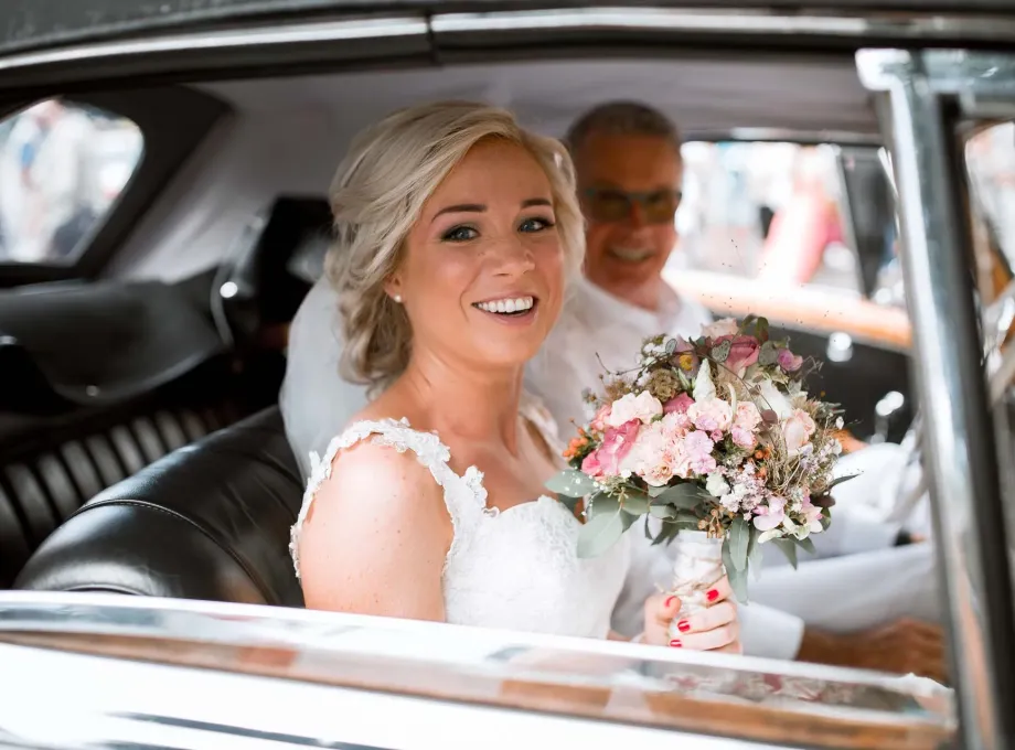 Der Bräutigam hat das Kleid noch nicht gesehen, die Braut fährt vor. Momente voller Aufregung und Emotionen. Ich bin immer da, wo gerade der wichtigste Moment eingefangen werden muss.