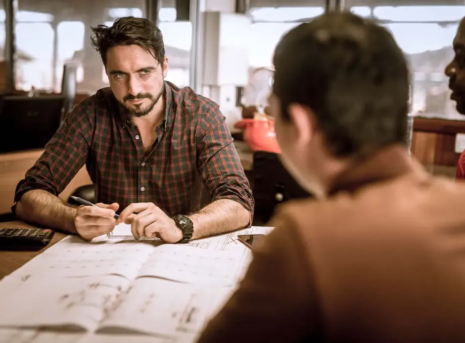 Eisatzbesprechung im Büro des Vorarbeiters