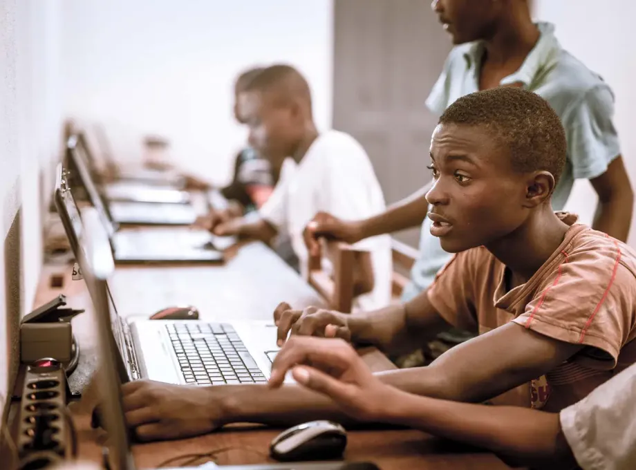 Der Computerraum bietet die Möglichkeit, das Tor zur Welt auch auf einem größeren Display zu erlleben. Ein Handy hat auch hier im Kongo nahezu jedes Kind in der Tasche,