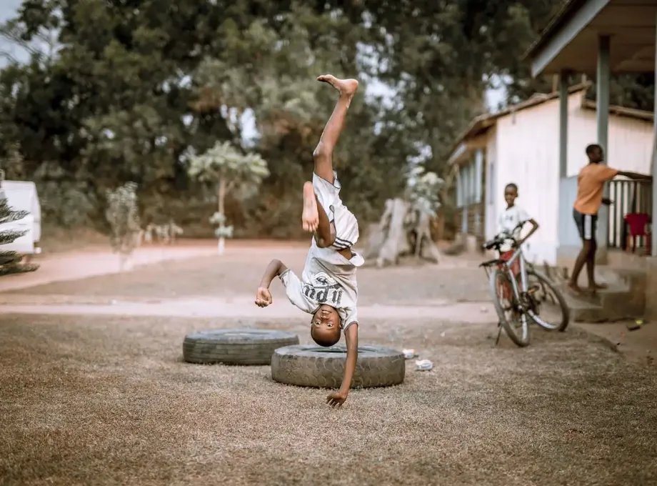 Nahe am Dorf gelegen, befindet sich eine kleine Schule für die Kinder der eingeborenen Pygmäenvölker. Am Tag unseres Besuches dort, war die Schule leider geschlossen. Dennoch waren einige der Kinder vor Ort und hatten großen Spaß daran mit dem Fotografen rumzualbern