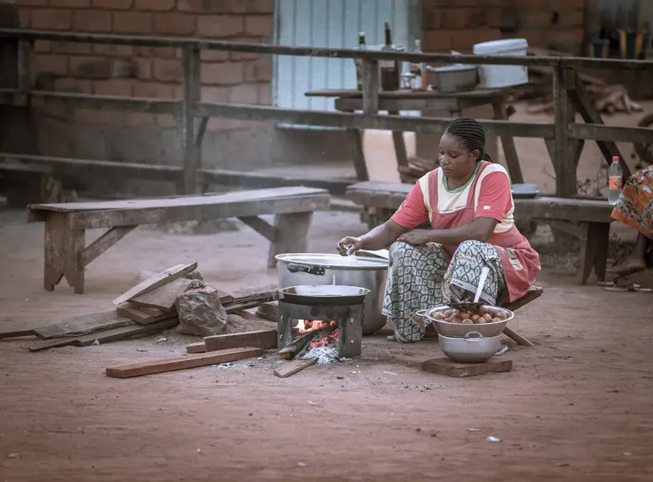 Überall im Dorf zu sehen: Frauen bereiten das Essen im Freien zu,